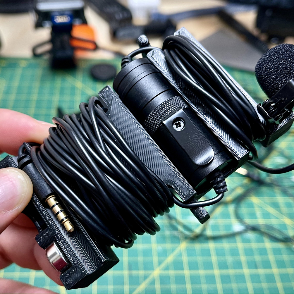 Boya BY-M1 might be the perfect starter microphone, but the chord is much longer than I’ll ever need. And if you have one, you know you need to carry extra batteries. So, I over engineer with this #3dprint wrap where the mic and the audio jack can be clipped on … with a place for 3 more batteries. This Boya microphone is a complete package to get you up and recording in no time flat. It’s not super easy plug and play.